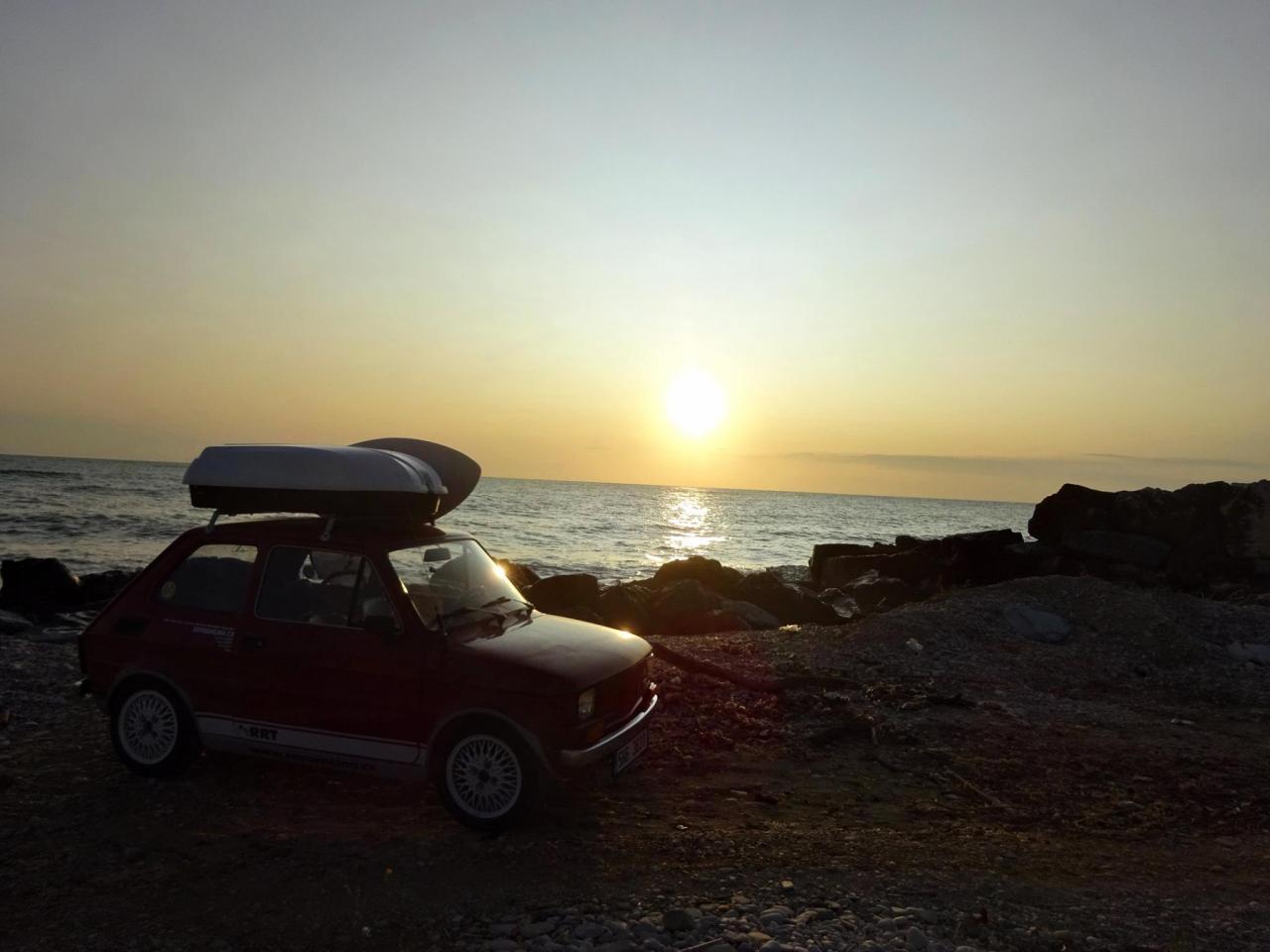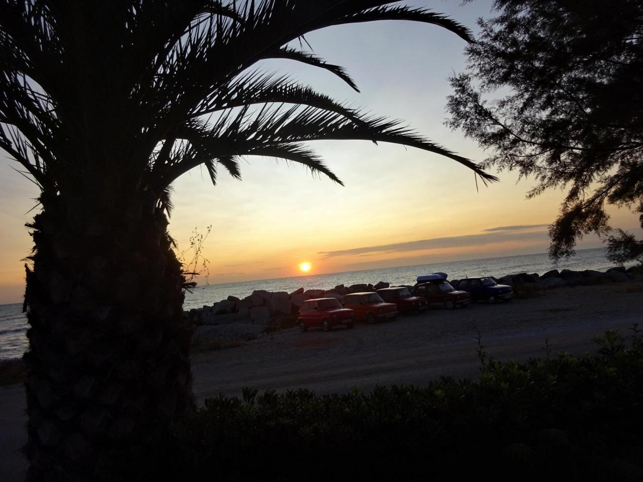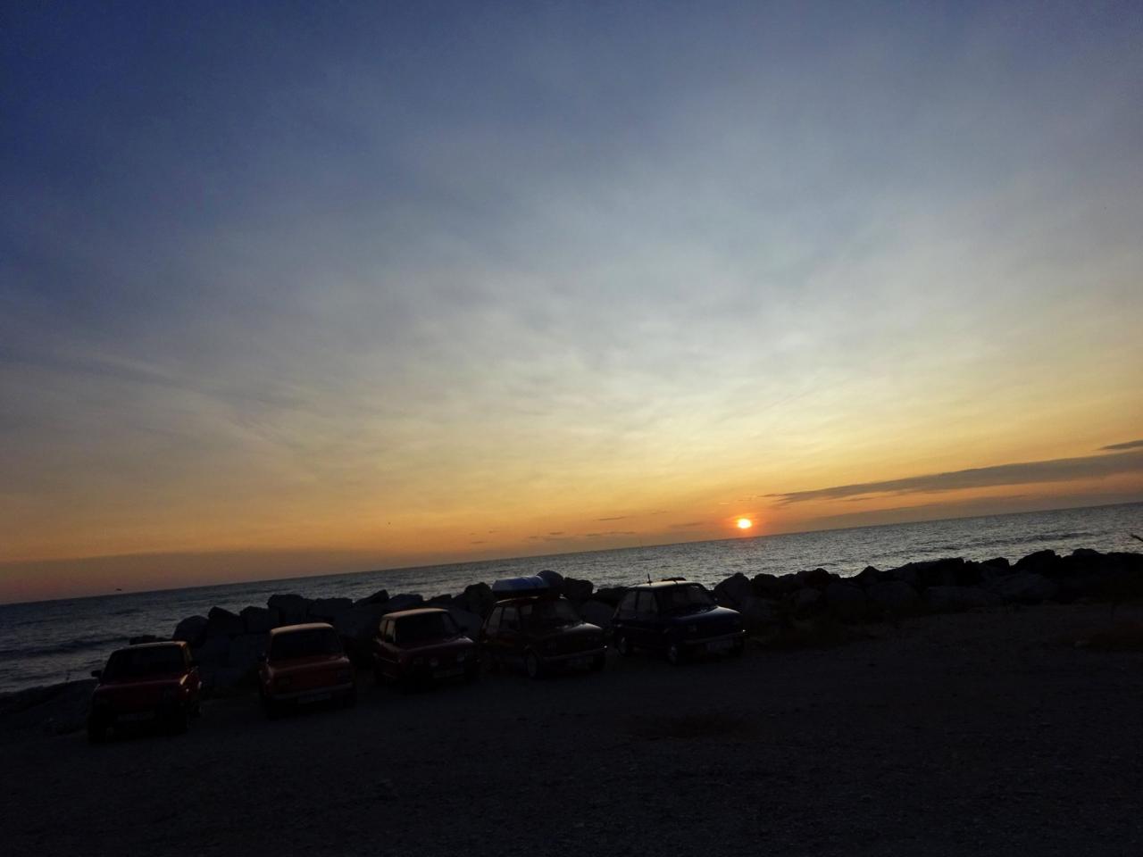 První dny výpravy bylo chladno, hlavně k ránu, už jsme se všichni těšili na teplo a hlavně na moře. Tento den jsme nasadili raketové tempo a tuším zhruba za 400km jsme dojeli až k moři, kde jsme se sešli se Slovenskou částí. Na začátku výpravy jsme se rozdělili na tři skupiny, protože jet v tak velkém počtu za sebou by bylo nereálné. Z minulých výprav vím, že nejvíce se dá jet za sebou v 6 autech a nejlepší cestování je ve 4. Ubytování jsme sehnali navečer u v kempu u moře a ještě tento den jsme poprvé vstoupili na pláž a po náročném dni si užili první chvilky ve vodě.