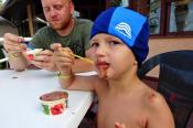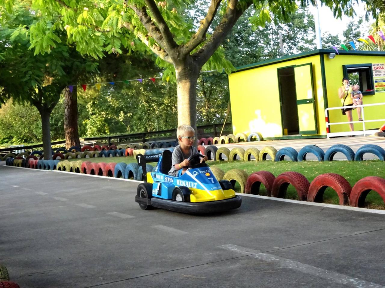 Projeli jsme druhou stranou dolů, opět s otevřenou pusou krásnými zatáčkami, tunely, mosty... Cestou dolů by mohl člověk mít obavy, že auto nebude brzdit, že budeme muset stát, aby brzdy vychladly... Ani houby, cestou dolů pomaličku, občas i rychleji tak, že jsem si cestu užíval a občas se přistihl i u toho, že bych mohl zpomalit. Auto brzdilo po celou dobu perfektně, mimo pískání, žádný problém nebyl. Cestou nahoru na Stelvio se mi občas rozvítila rezerva, cestou dolů nezhasla. Kdyby došel benzín, dolů bych dojel, to by problém nebyl, z kopce to pojede. Naštěstí jsem ve městě Bormio narazil na benzinku s obsluhou, kde cena byla skoro 50,- Kč za litr, ale hrdě tankujeme plné nádrže. Po naplánování další trasy jsme se vydali směrem k Lago D Garda. Před vjezdem do tunelu, který měl asi 8km, kde nebyla možnost se otočit, ostatní účastníci zpomalují a zastavují před tunelem. Neměl jsem jinou možnost, než jet dál. Po 8 km jsem zastavil a zjistil jsem, že jedna palivová pumpa stávkuje. Nám to vůbec nevadí, na parkovišti alespoň vyvenčíme děti. Po opravě pokračujeme a navečer se ubytováváme v kempu u Lago D Igro, kousek od Gardy.