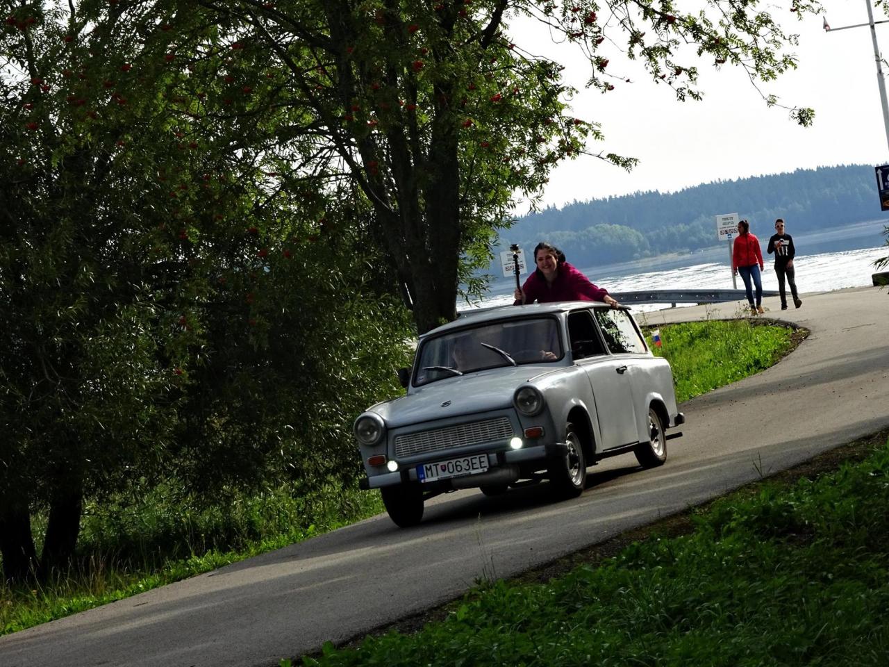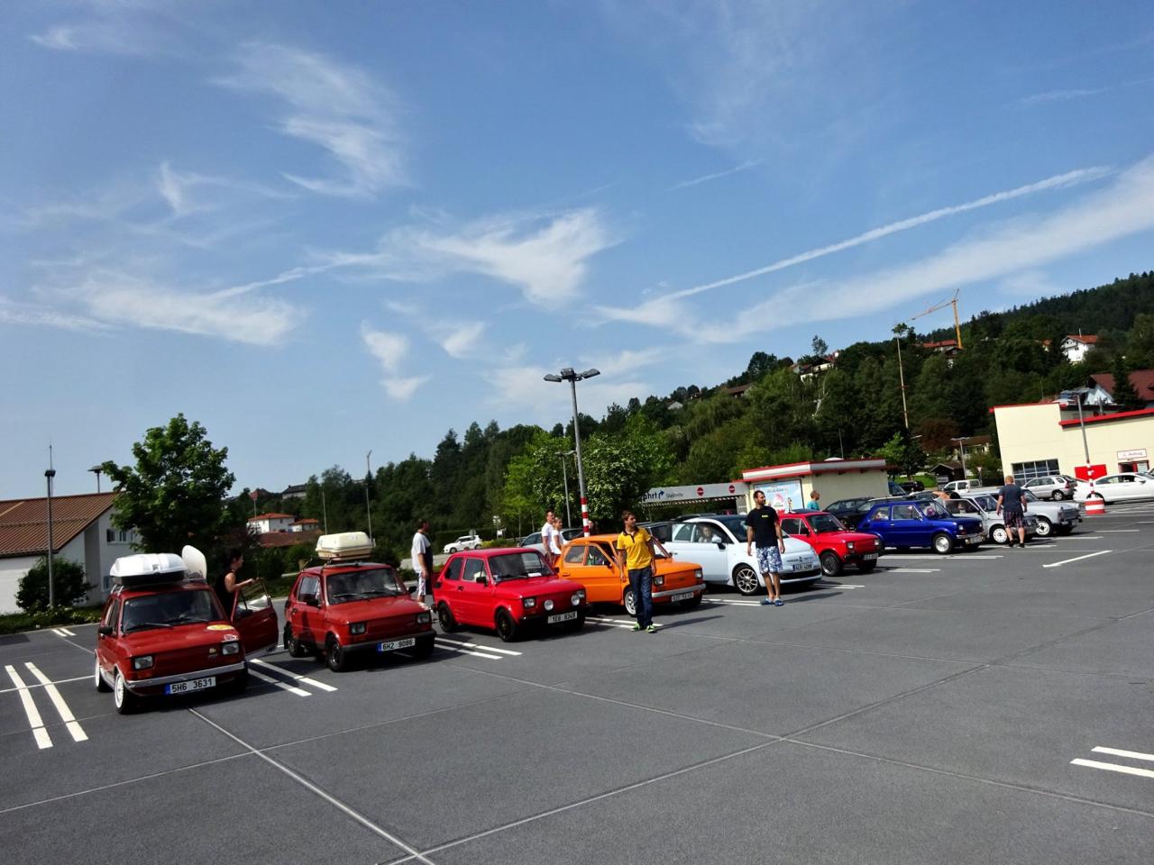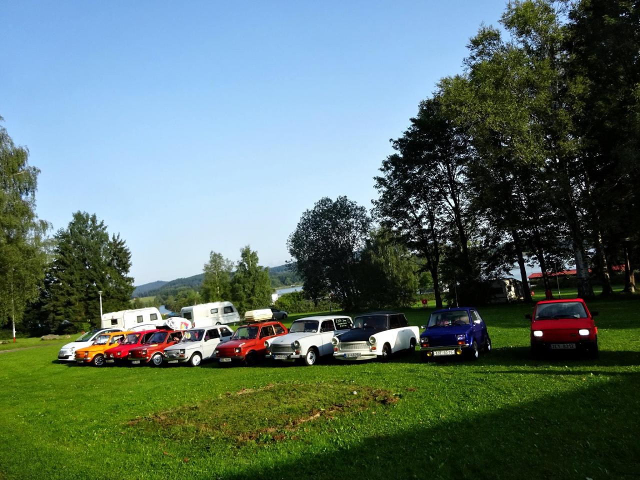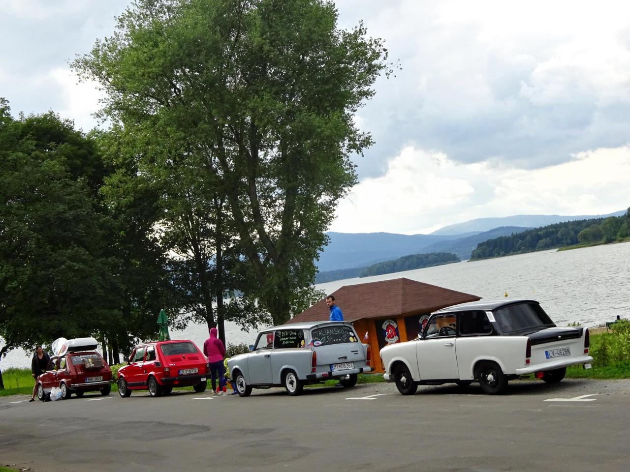 I když neradi, museli jsme odjet směrem na Lipno, kde jsme kempovali již minulýr rok a moc se nám tady líbilo. Po cestě jsme se střetli se Slovenskou posádkou tvořenou dvěma trabanty. Po příjemném přivítání jsme se rozhodli, že vyjedeme na cestu. První křižovatka, Slováci se ztrácí. Telefon ... ,,Filip, odbočili jste v pravo, nebo v levo, my v levo". Měli jsme jet v pravo ... no to nám to pěkně začíná, neujeli jsme ještě ani kilometr a už jsme se hledali. A to jsme byli teprve 4 auta a při představě, že nás pojede 14 ... no uvidíme, jedeme dál a už lépe. Večer v autokempu se nás sešlo 10 aut, kdy zbytek Slovenských posádek nabereme další dny po cestě, jelikož to zakempovali u města Linz v Rakousku.