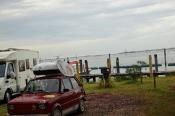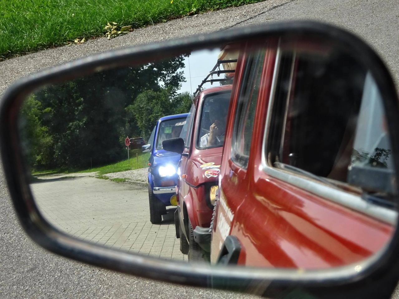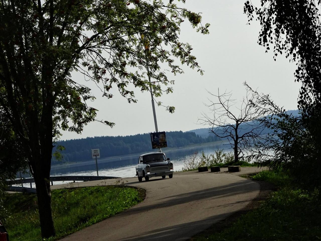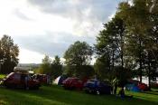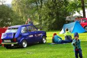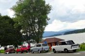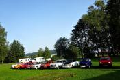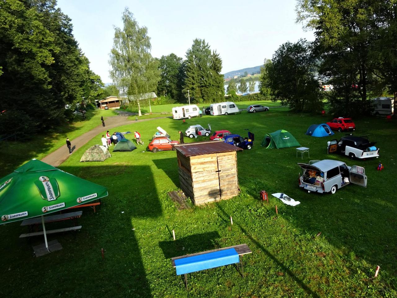 I když neradi, museli jsme odjet směrem na Lipno, kde jsme kempovali již minulýr rok a moc se nám tady líbilo. Po cestě jsme se střetli se Slovenskou posádkou tvořenou dvěma trabanty. Po příjemném přivítání jsme se rozhodli, že vyjedeme na cestu. První křižovatka, Slováci se ztrácí. Telefon ... ,,Filip, odbočili jste v pravo, nebo v levo, my v levo". Měli jsme jet v pravo ... no to nám to pěkně začíná, neujeli jsme ještě ani kilometr a už jsme se hledali. A to jsme byli teprve 4 auta a při představě, že nás pojede 14 ... no uvidíme, jedeme dál a už lépe. Večer v autokempu se nás sešlo 10 aut, kdy zbytek Slovenských posádek nabereme další dny po cestě, jelikož to zakempovali u města Linz v Rakousku.