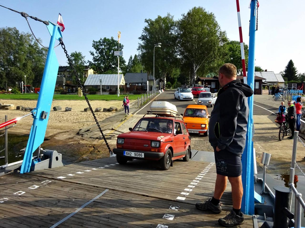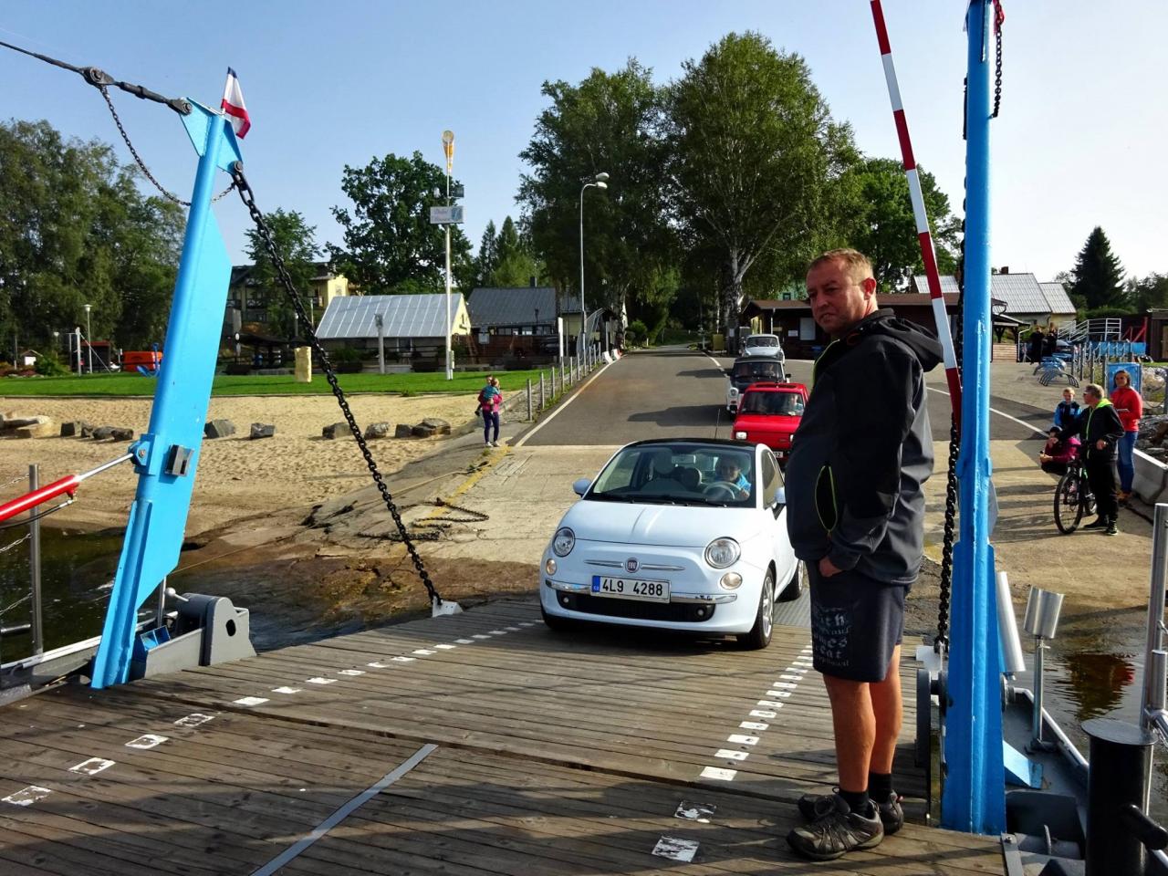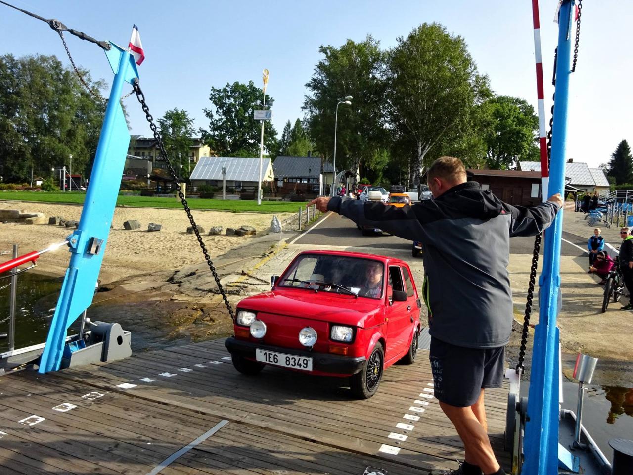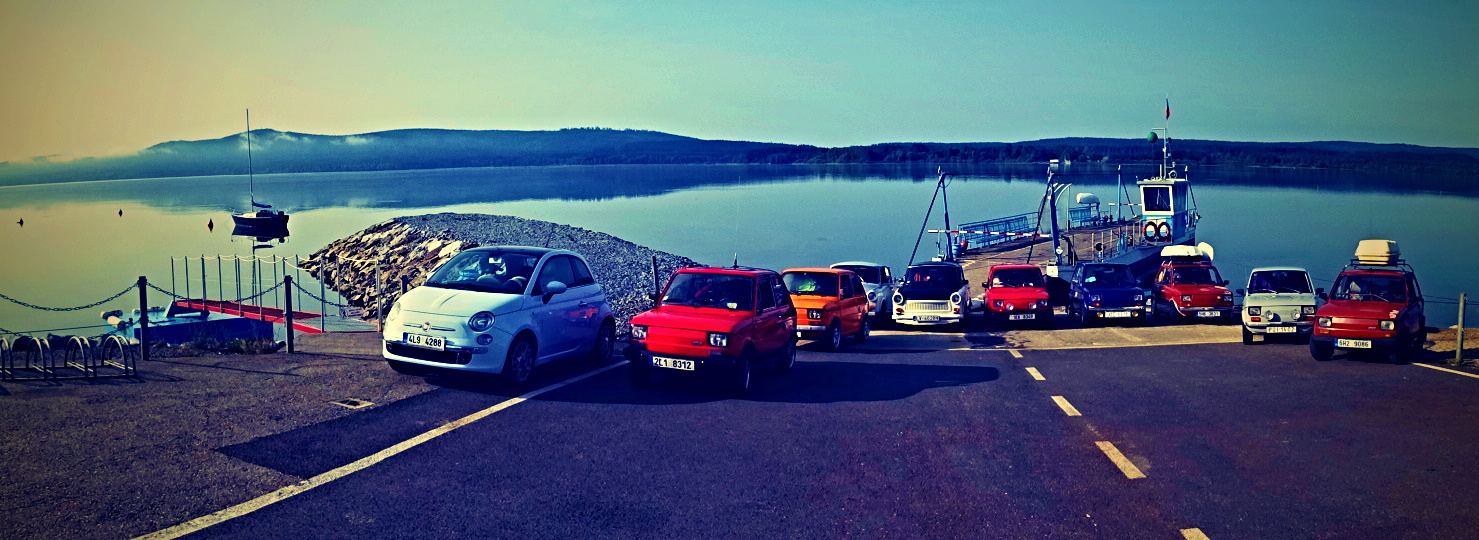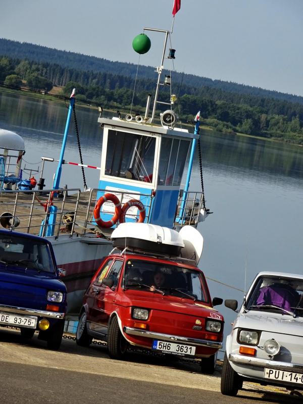 Už v roce 2016 jsme se svezli na trajektu přes Lipno. Na facebooku Dolní přívoz Vltavice. Toho času nás na trajekt najelo 6 aut. Cesta se nám velice líbila, komu by ne, povozit svá auta na trajektu. Fotky z výpravy jsem zaslal plavby vedoucímu, který mi dal nabídku. Když v roce 2017 naplníte trajekt Fiátky, budete mít od nás plavbu zadarmo. A to je výzva! Je nás 10, sice ne všichni Fiátci, ale i tak se vzduchem chlazení dvouválci počítali. Trajekt jsme naplnili a svezení bylo zdarma. Tímto ještě jednou moc děkujeme za svezení!