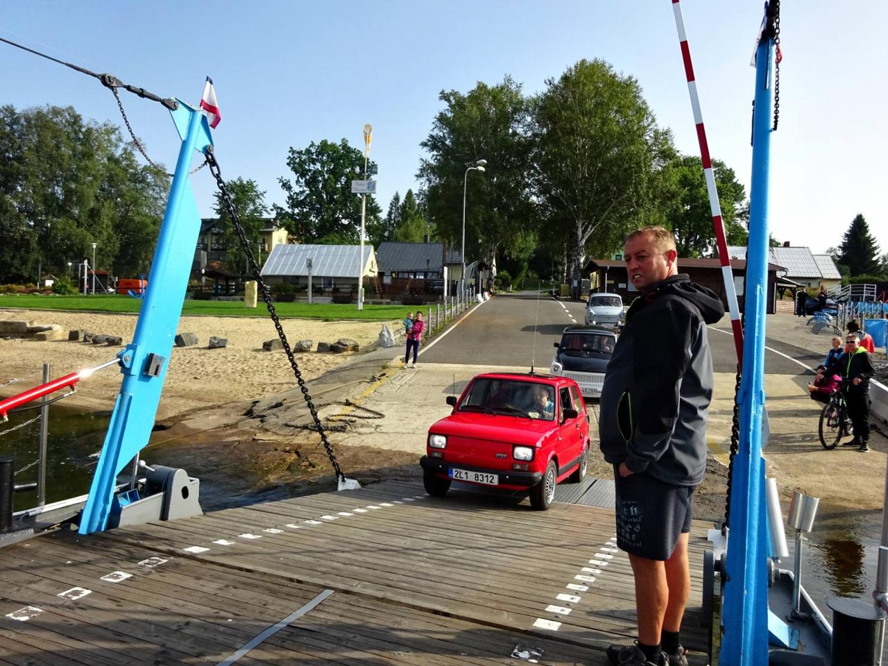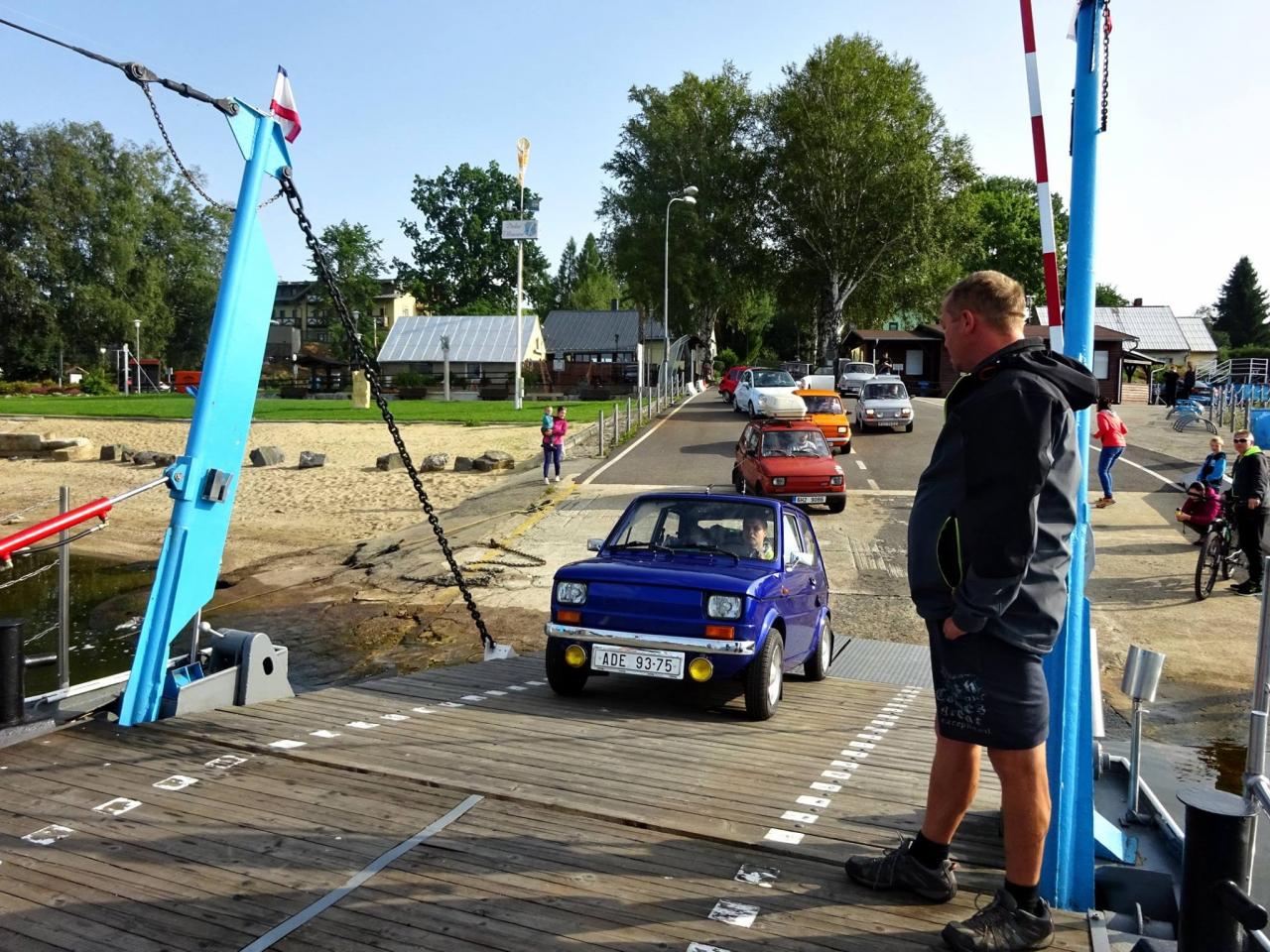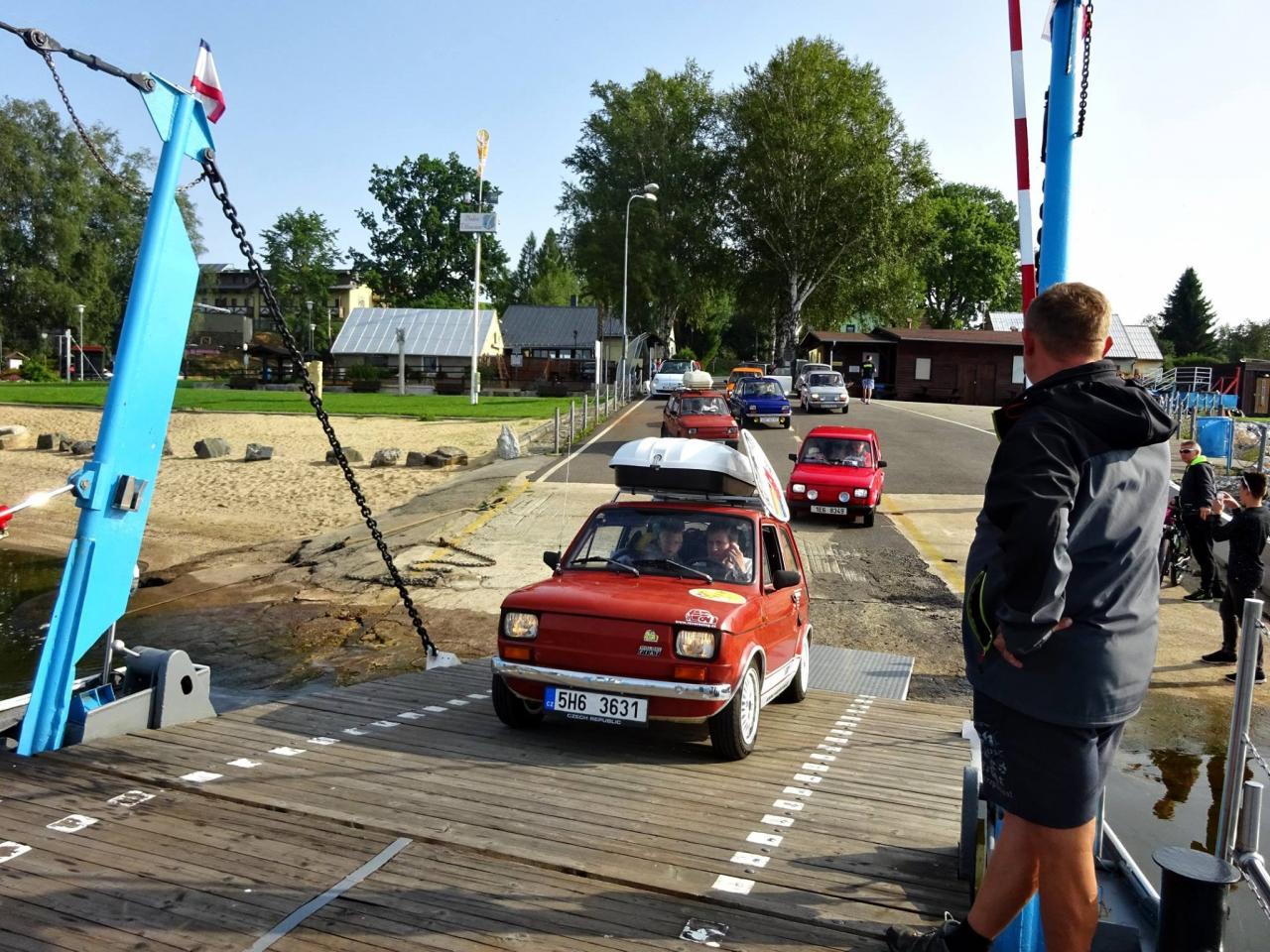 Už v roce 2016 jsme se svezli na trajektu přes Lipno. Na facebooku Dolní přívoz Vltavice. Toho času nás na trajekt najelo 6 aut. Cesta se nám velice líbila, komu by ne, povozit svá auta na trajektu. Fotky z výpravy jsem zaslal plavby vedoucímu, který mi dal nabídku. Když v roce 2017 naplníte trajekt Fiátky, budete mít od nás plavbu zadarmo. A to je výzva! Je nás 10, sice ne všichni Fiátci, ale i tak se vzduchem chlazení dvouválci počítali. Trajekt jsme naplnili a svezení bylo zdarma. Tímto ještě jednou moc děkujeme za svezení!