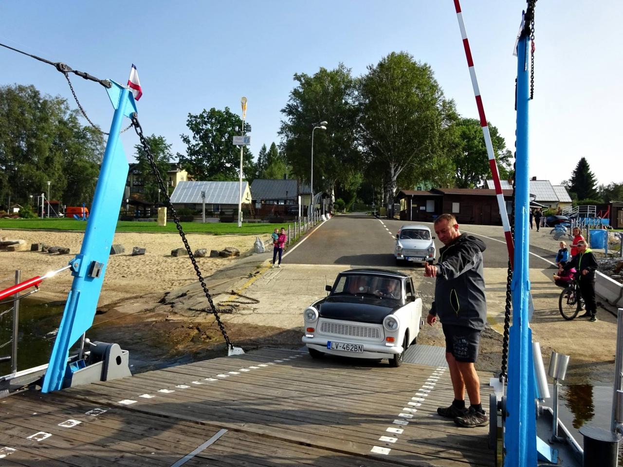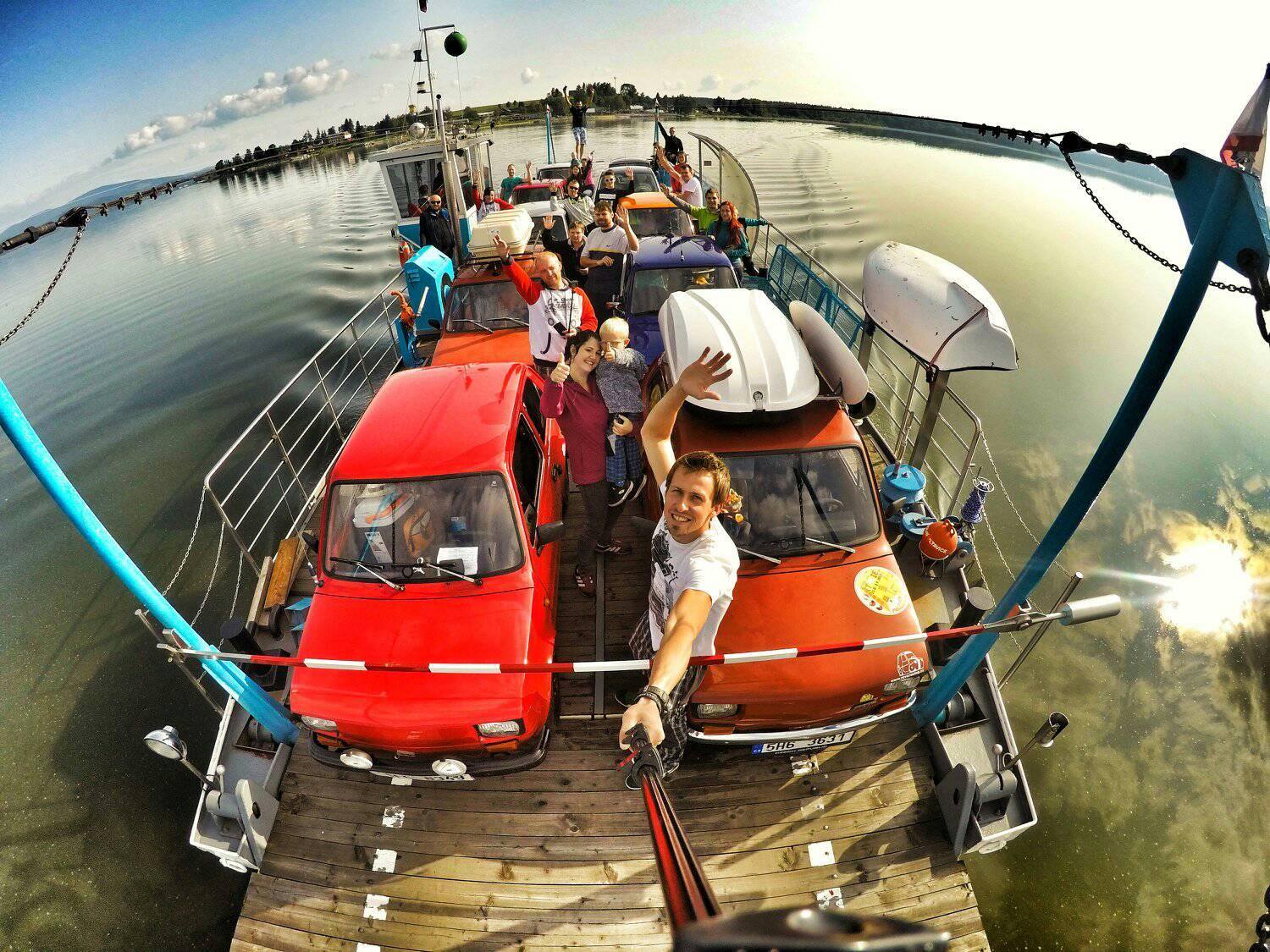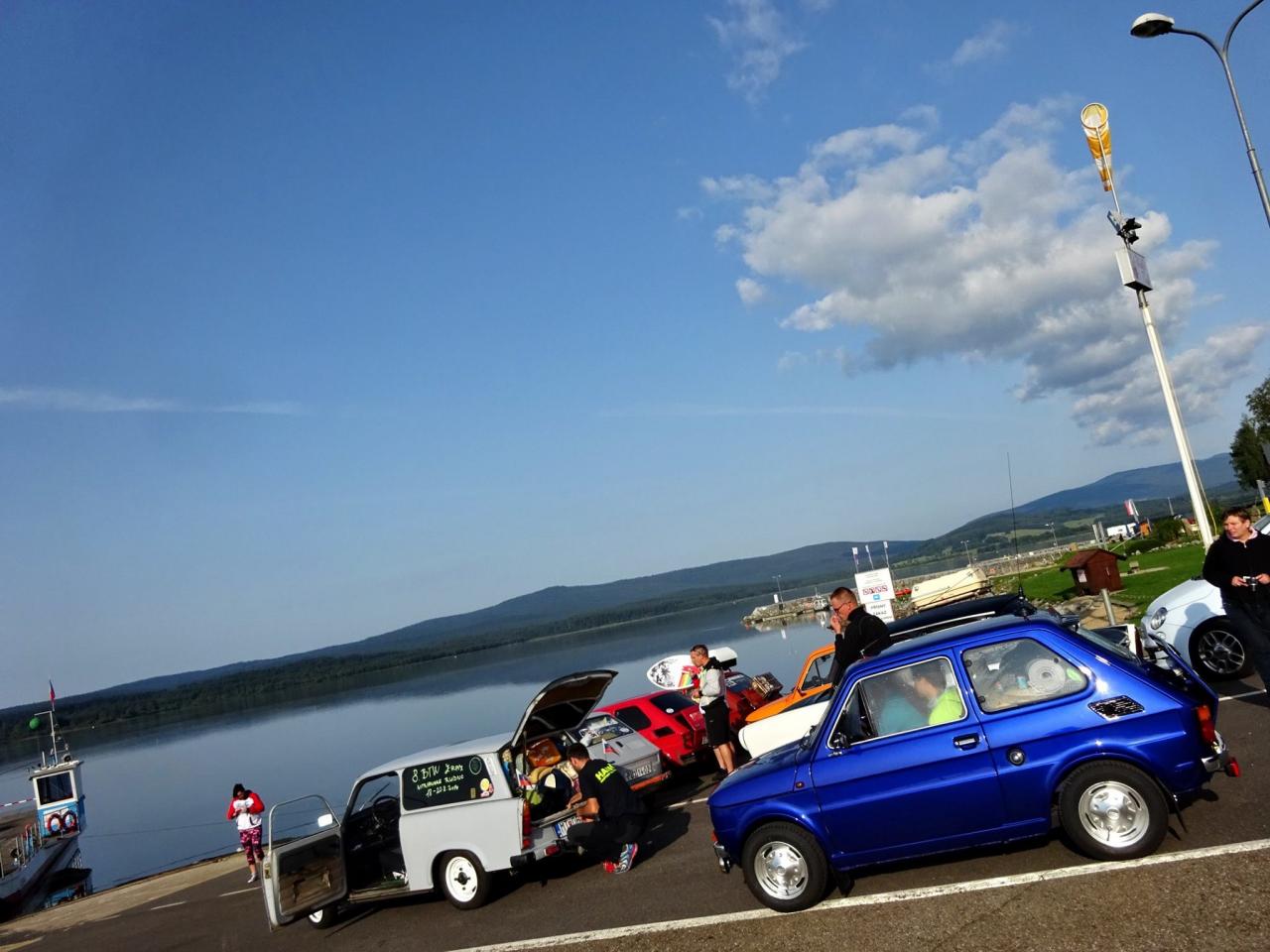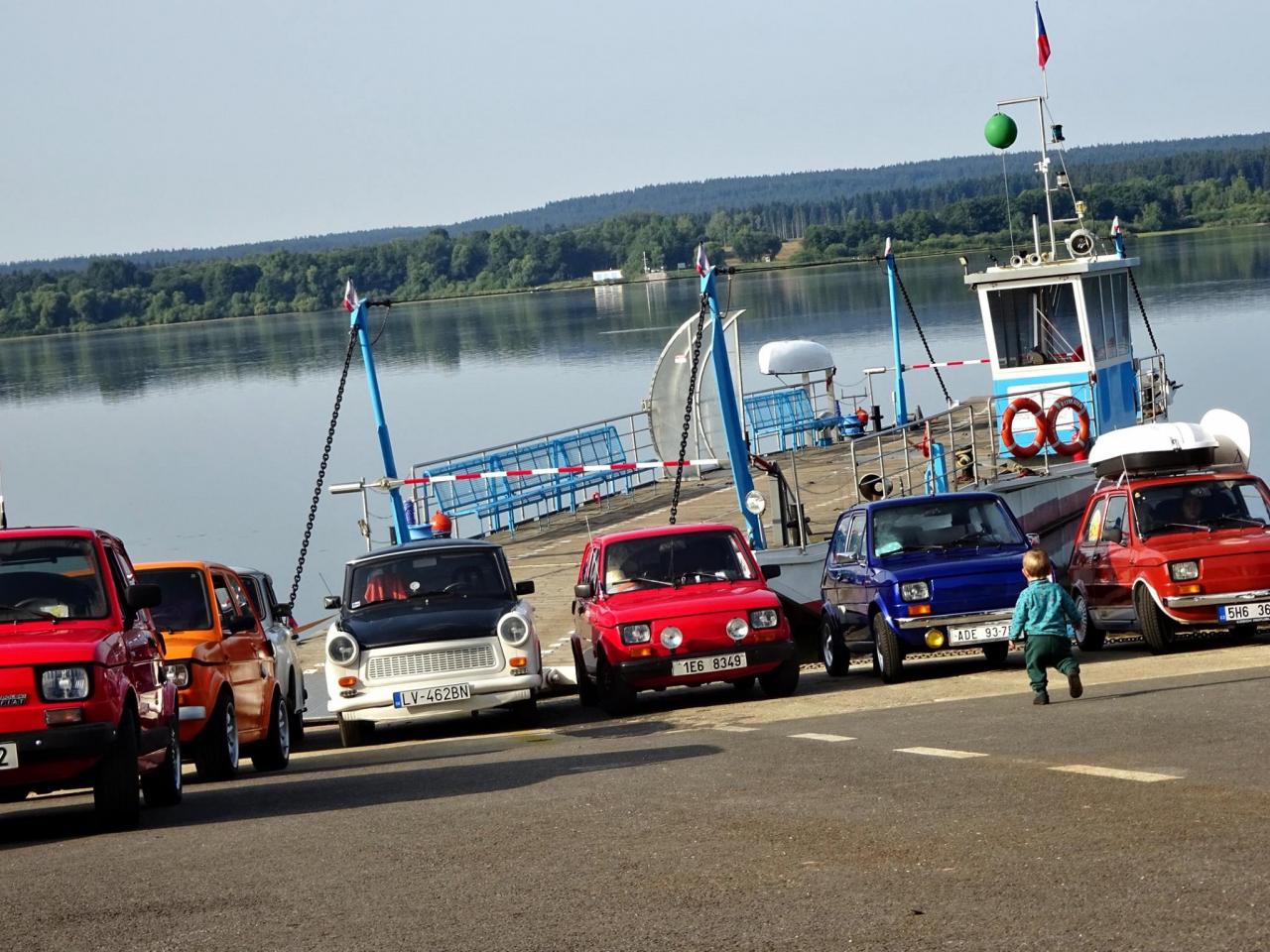 Už v roce 2016 jsme se svezli na trajektu přes Lipno. Na facebooku Dolní přívoz Vltavice. Toho času nás na trajekt najelo 6 aut. Cesta se nám velice líbila, komu by ne, povozit svá auta na trajektu. Fotky z výpravy jsem zaslal plavby vedoucímu, který mi dal nabídku. Když v roce 2017 naplníte trajekt Fiátky, budete mít od nás plavbu zadarmo. A to je výzva! Je nás 10, sice ne všichni Fiátci, ale i tak se vzduchem chlazení dvouválci počítali. Trajekt jsme naplnili a svezení bylo zdarma. Tímto ještě jednou moc děkujeme za svezení!