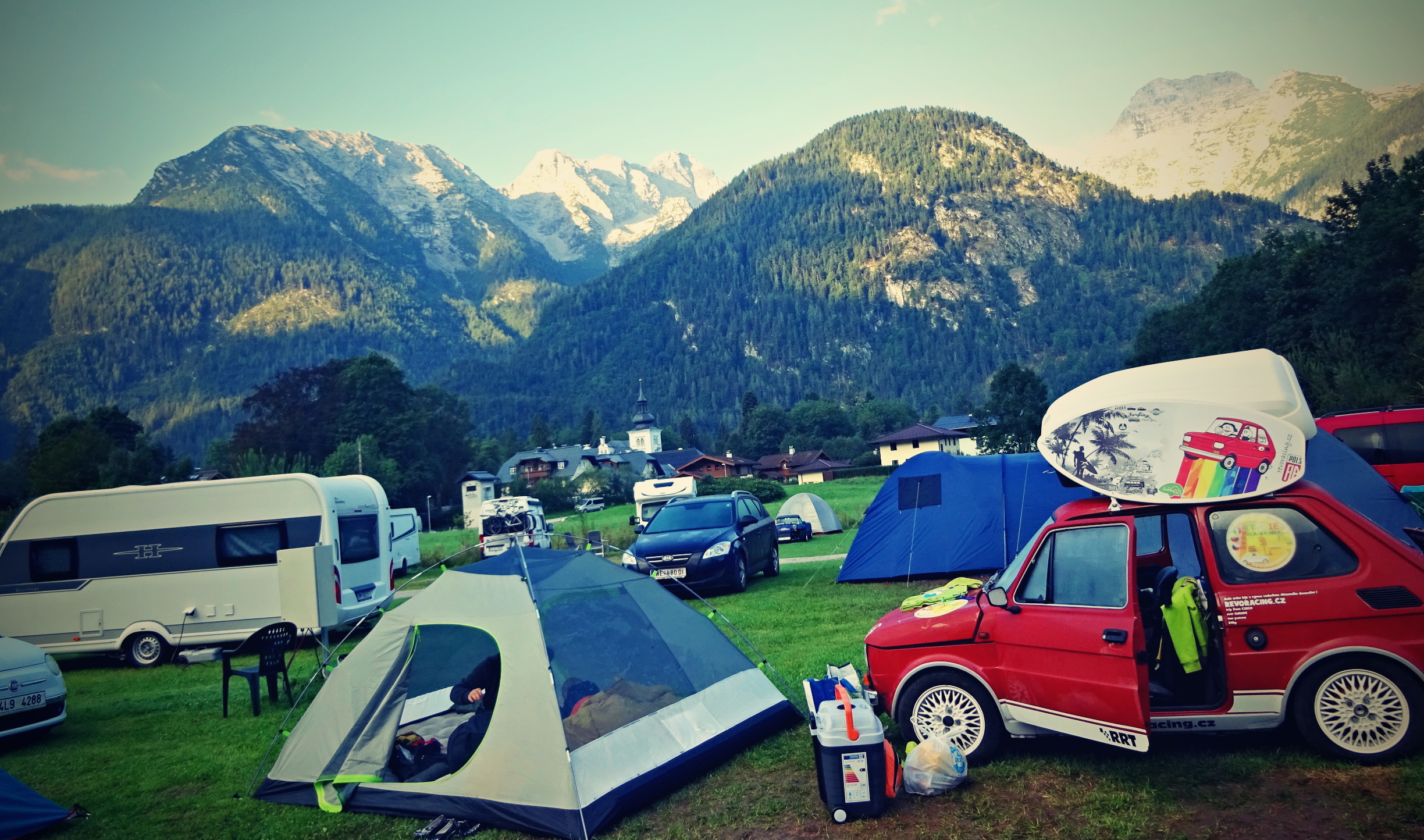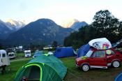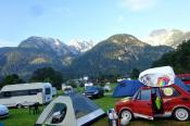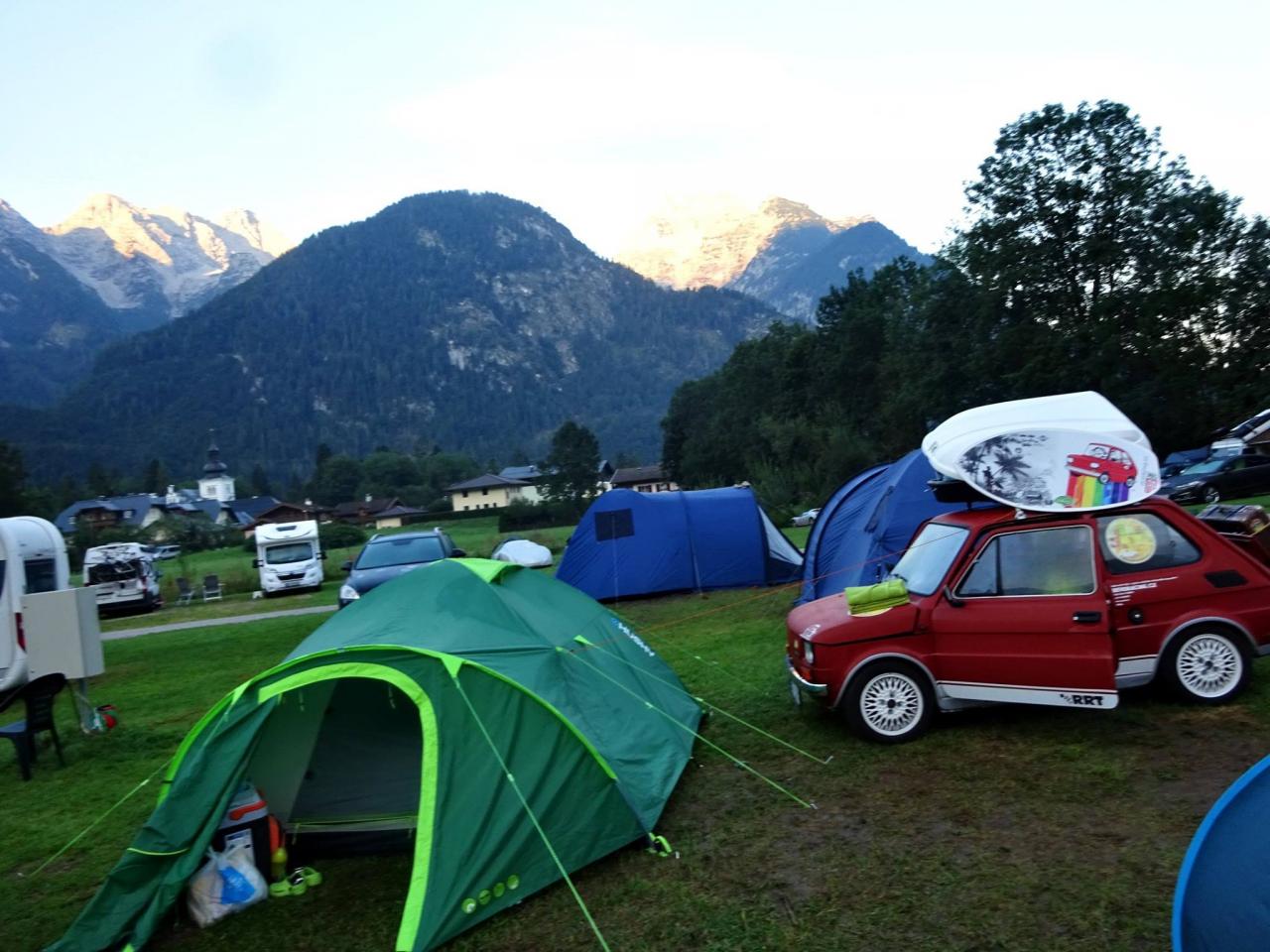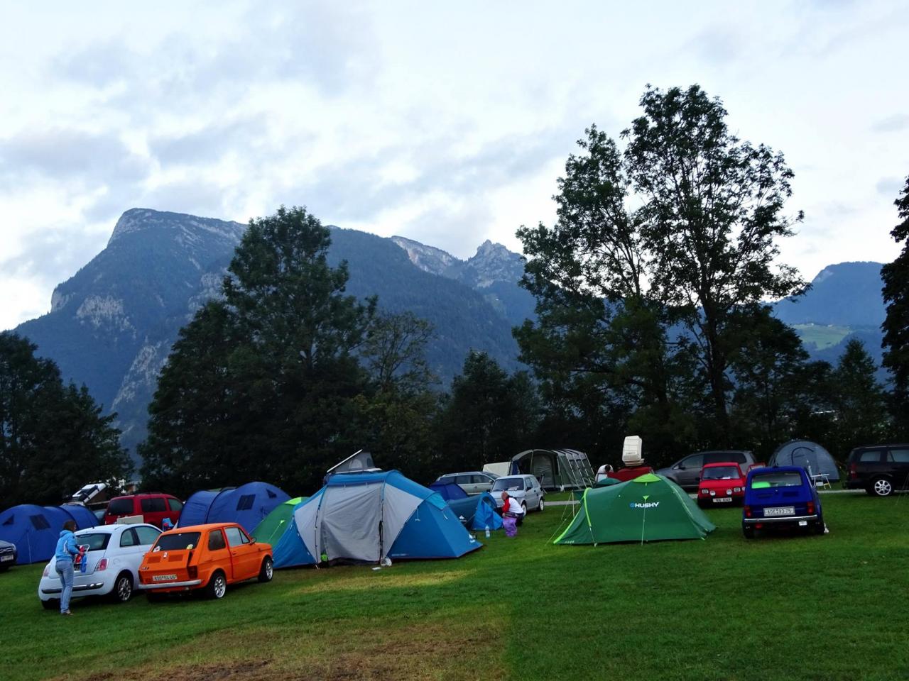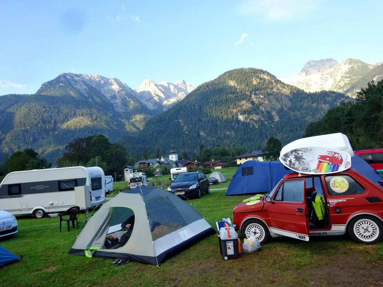 Trasu jsme zvolili přes Německo, kolem Hitlerova sídla Berchtesgaden směrem do města Martin bei Lofer, kde jsme měli vyhlídnutý Camping Grubhof. Když nás slovensky mluvící pracovník kempu ubytoval a ukázal nám, na jakém místě budeme rozkládat stany, doslova mi spadla huba. No posuďte samy, není kempování v takovémto kempu krásné ? I když teda k ránu bylo asi 6 stupňů, ale to se dá přežít. :)