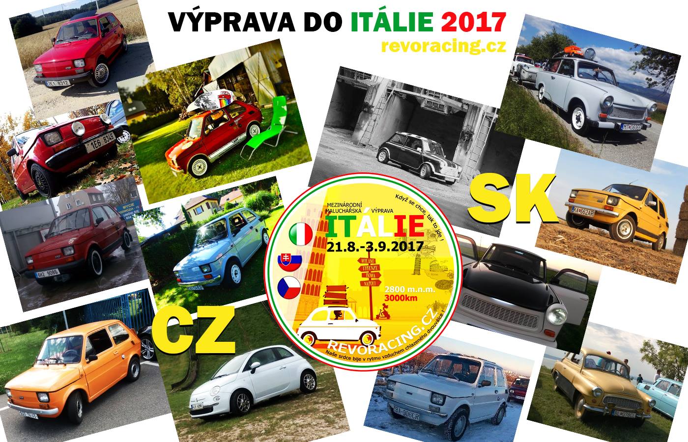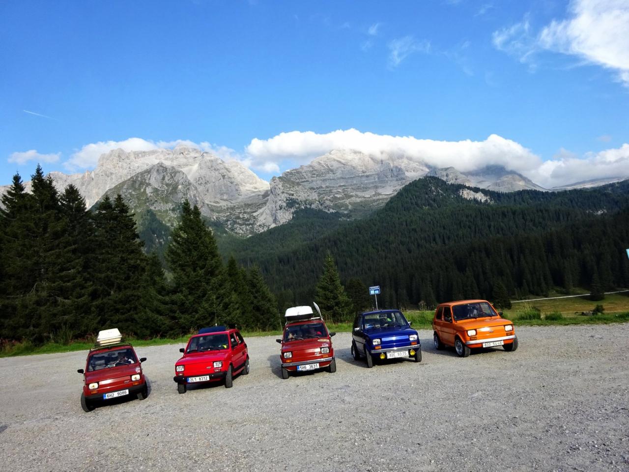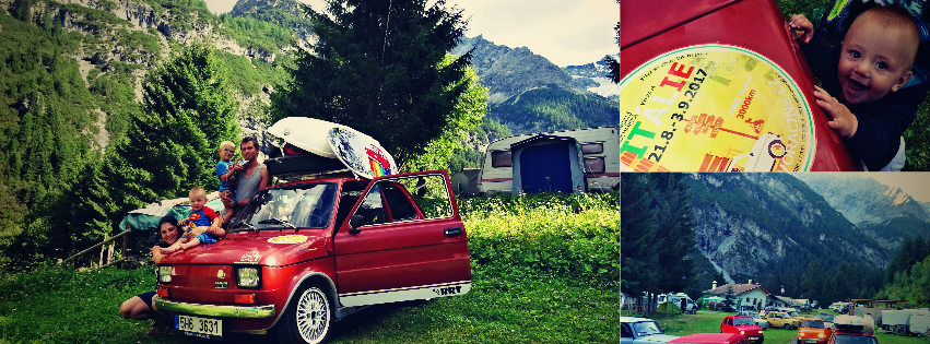 Když jsme v roce 2016 vyrazili vzduchem chlazenými dvouválci do Rakouska, škrábat se do horských průsmyků s cílem vyjet na Grossglockner Hochalpenstrasse, který se nachází v nadmořské výšce 2504 m/n/m, nemysleli jsme si, že se nám Rakouské Alpy tak zalíbí a budeme se tam chtít vrátit zpátky. V roce 2015 jsme jeli na dovolenou k Baltu, kde jsme se sice vykoupali v moři, ale přeci jen, nebylo to to pravé pro děti. Tuto dovolenou jsme plánovali více u vody a hlavně několik dní na jednom místě. Kudy tedy pojedeme, abychom mohli jet znovu přes Alpy a za teplem ? Napadla nás jedině Itálie, rodný domov našich aut ( teda pouze původně na papíře ) a bezpochyby možnost navštívit velké množštví kráských míst po ceště. Naše cesty se snažíme vždy naplánovat tak, abychom "něco viděli". Nemám rád jet 1200 tupě po dálnici a jet pouze za jedním cílem. Bez dlouhého rozmýšlení jsem na facebooku založil událost, samozřejmě s velkým předstihem, asi rok dopředu. A sakra, už máme 6 účastníků, za měsíc dalších 6 ... Nepřehnal jsem to trošku? Že jsem napsal: ,, Jet s námi může kdokoliv"? Finální počet aut byl 11 Fiátků 126, 2 Trabanti a 1 Mini Cooper tvořené mezinárodní posádkou složenou ze Slováků a Čechů. Proč ne, nebudeme o tom špekulovat, jedeme všichni, to dáme.